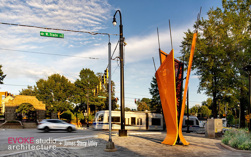 Excelsior is a dual-site public art installation developed for Charlotte’s Historic West End, a community with deep cultural, educational, and civil rights significance. Commissioned by the City of Charlotte, the project translates local histories and community narratives into large-scale sculptural forms that function as both landmarks and cultural markers.